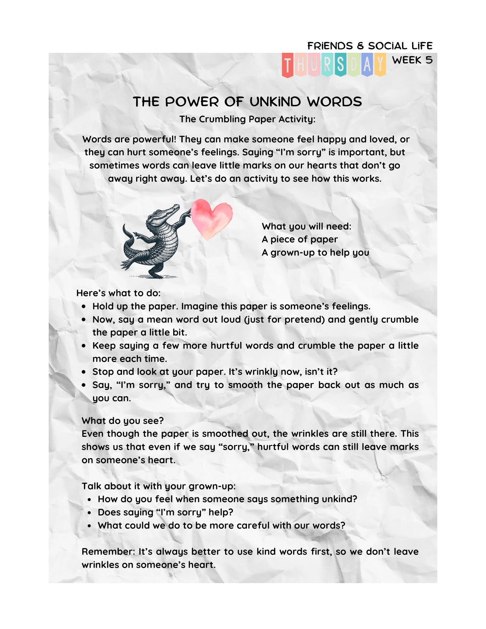 Kids learn how to navigate friendships with kindness, empathy and awareness. Understanding how their words and actions impact others and how to show up as a supportive friend. -